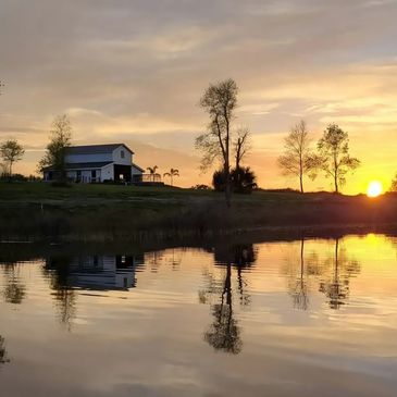 We have multiple locations outdoors for your dream Ceremony and Reception on our 20 acres of beautiful Old Florida Property, looking out over Turkey Lake. You will find Miniature Zebu Cows, Barns, Trees, Wide-open spaces, and Superior Sunsets. We can provide event tents, Mobile bathrooms, and lots of parking area with parking attendants.